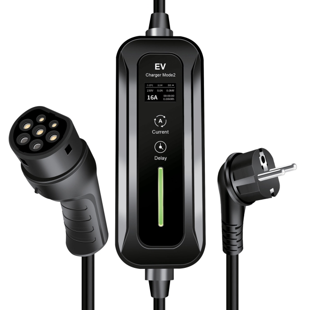 LCD-displayet viser status for ladestrøm, spenning, effekt, ladetid, ladeprosess og temperatur. Den IP67-klassifiserte kabelen er den perfekte følgesvenn på veien for å lade ladbare hybrider (PHEV) og elbiler (BEV) i nødsituasjoner (når ingen ladestasjon er tilgjengelig).