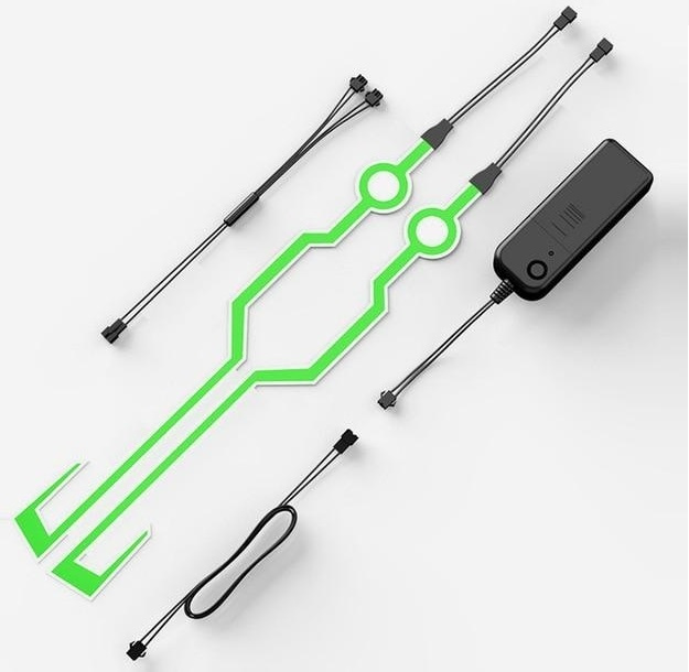 Stripene er universelle og passer til alle hjelmer, og kan klippes eller skjæres til ønsket lengde. Stripene festes med kraftig dobbeltsidig tape. Stripene drives av 2x AA-batterier som ikke er inkludert.
