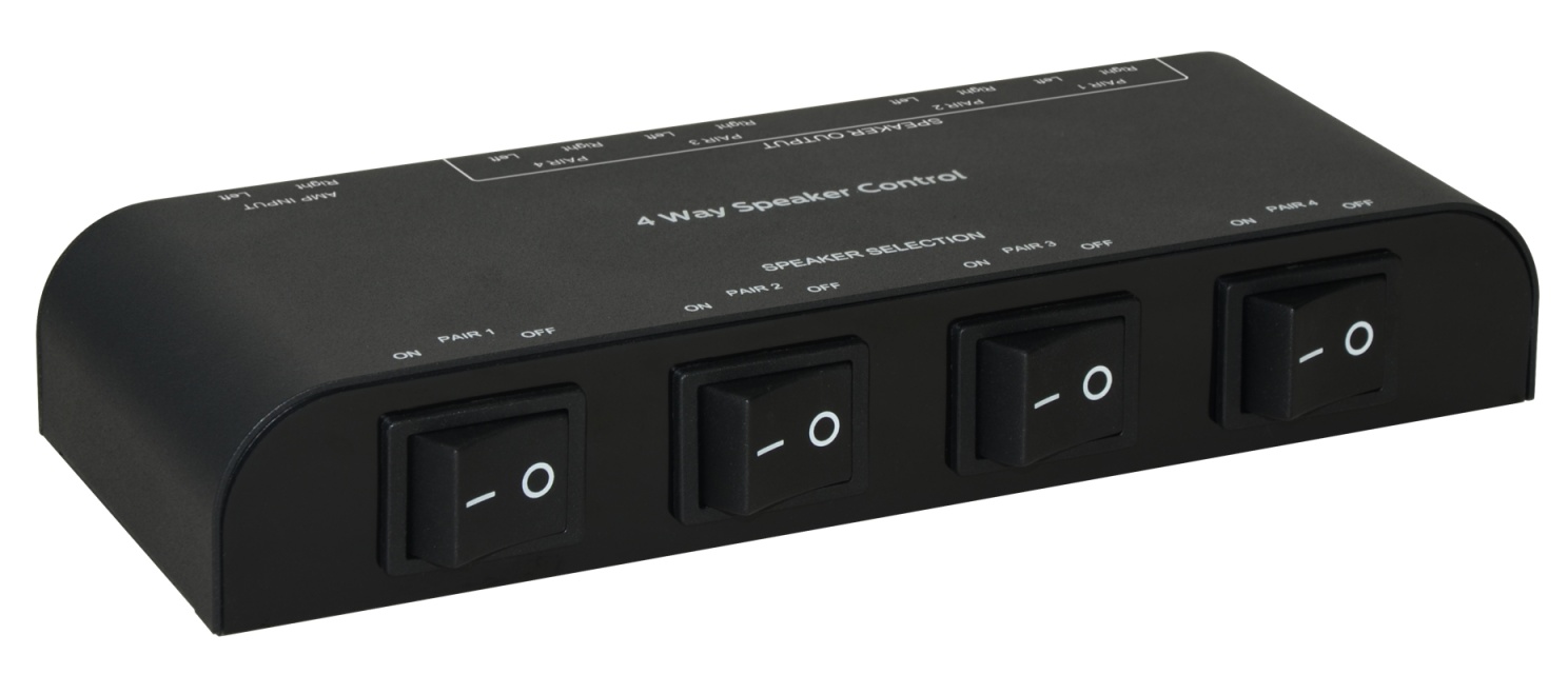 En høyttalerbryter brukes til å distribuere lydsignaler fra lydforsterkere til forskjellige høyttalere i brytermodus. Dette produktet er kun godkjent for tilkobling til høyttalerutganger på lydforsterkere og utganger på passive høyttalere.