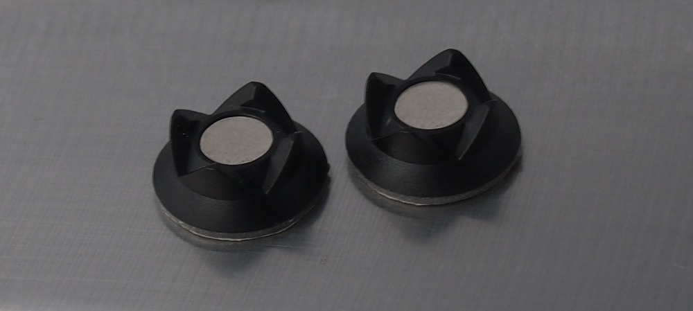 To ekstra magnetiske stativer for Antilon Audion ModMic-mikrofonen. Du kan for eksempel feste magnetstativene til to hodetelefoner og enkelt bytte ModMic-mikrofonen mellom stativene.
