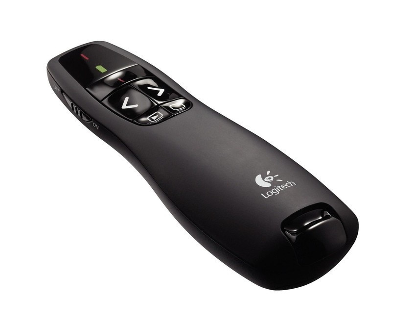 Logitech Trådløs presentasjonsenhet R400. Grensesnitt: USB, Produktfarge: Svart. Batteritype: AAA. Bredde: 40 mm, Dybde: 25 mm, Høyde: 115 mm