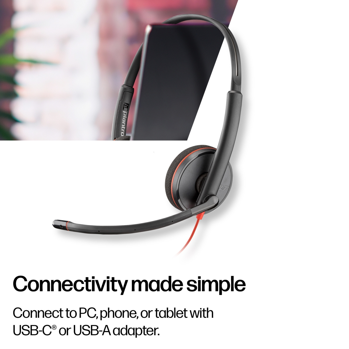- Koble til raskt og enkelt Blackwire 3300-serien med headset fungerer helt etter plug-and-play-prinsippet med USB-enheter, slik at brukerne kan ta imot samtaler på kontoret eller når de er på farten. Headsetets solide konstruksjon gir pålitelighet. Dette er den brukervennlige hodetelefonmikrofonen du har lett etter.