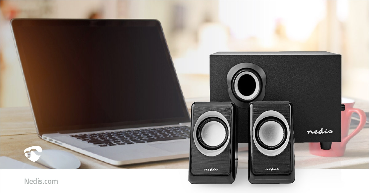 De to høyttalerne og den kraftige subwooferen kan kobles til PC-en eller smarttelefonen med en 3,5 mm stereokontakt og kan drives av en USB-tilkobling - uten en ekstern strømadapter.