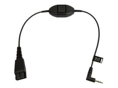 JabraKabel med Push-To-Talk-knapp for å koble et hodesett med hurtigkontakt til telefoner med 2,5 mm-kontakt. Sjekk kompatibilitetsguiden for å se hvilken kabel som passer til din telefon.