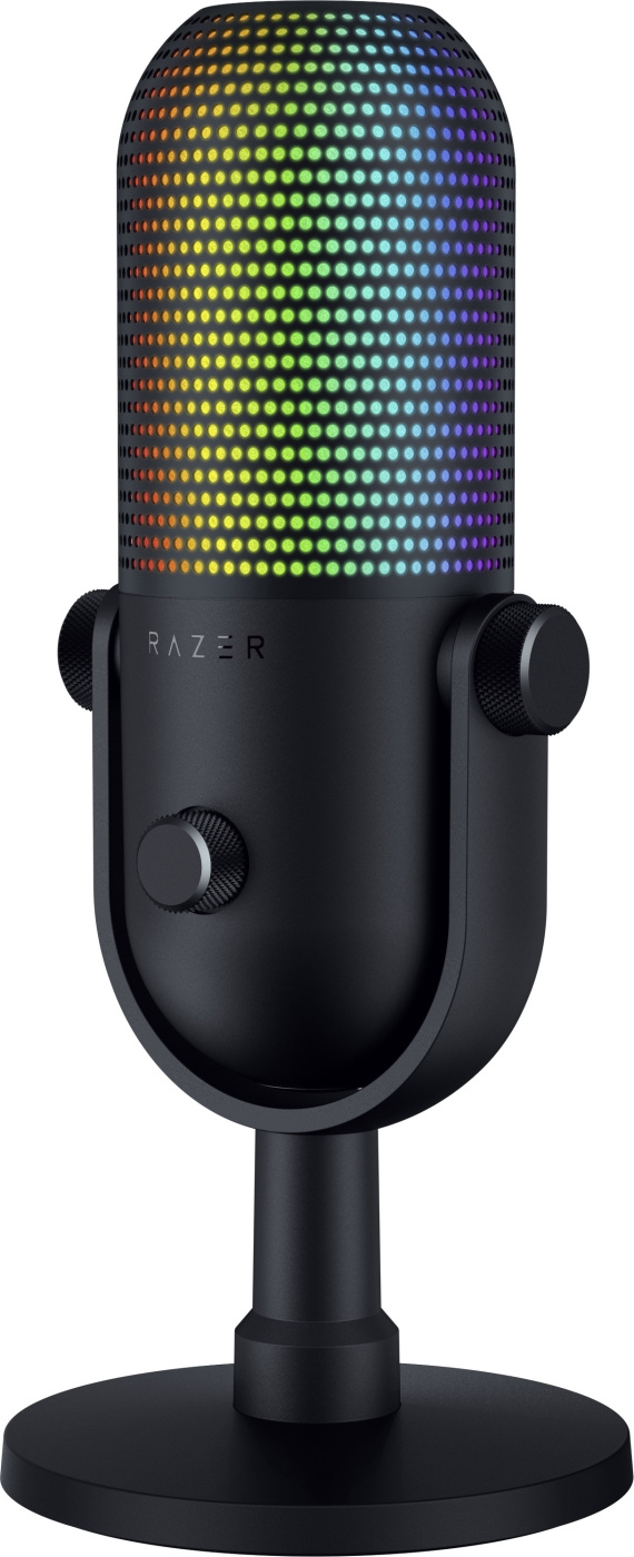 Razer Seiren V3 Chroma - profesjonell USB-mikrofon med RGB-lys som kan tilpasses. Med strømresponsiv belysning og multifunksjonelle push-to-mute-funksjoner får du kontrollen, klarheten og elegansen du trenger for spilling, strømming og chatting.