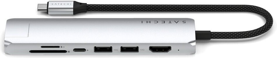 Satechi 7-i-1 USB-C Slim Multiport-adapter er den perfekte følgesvennen til din bærbare PC eller nettbrett. Forbedre tilkoblingsmulighetene til enheten din med denne stilige og allsidige adapteren, som er designet for å utvide portene dine og holde deg tilkoblet uansett hvor du er.