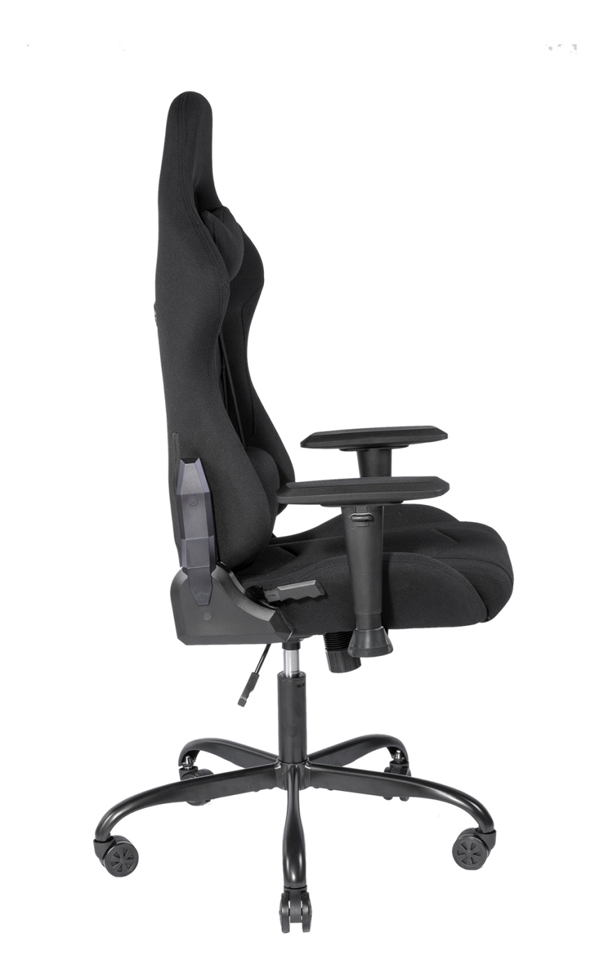 DC220 Gamingstol med mykt lerret, ergonomisk, 5-punkts akselavstand, høy rygg, svart Gamingstol med mykt lerret og ergonomiske likheter med en racingstol. Med høy rygg og ekstra puter til nakkestøtte og ryggstøtte vil du ikke få problemer med rygg og nakke etter utallige timer i denne stolen. Stolen kan selvfølgelig heves og senkes, og det samme gjelder armlenene. Putene for rygg og nakke kan også justeres for best mulig passform.