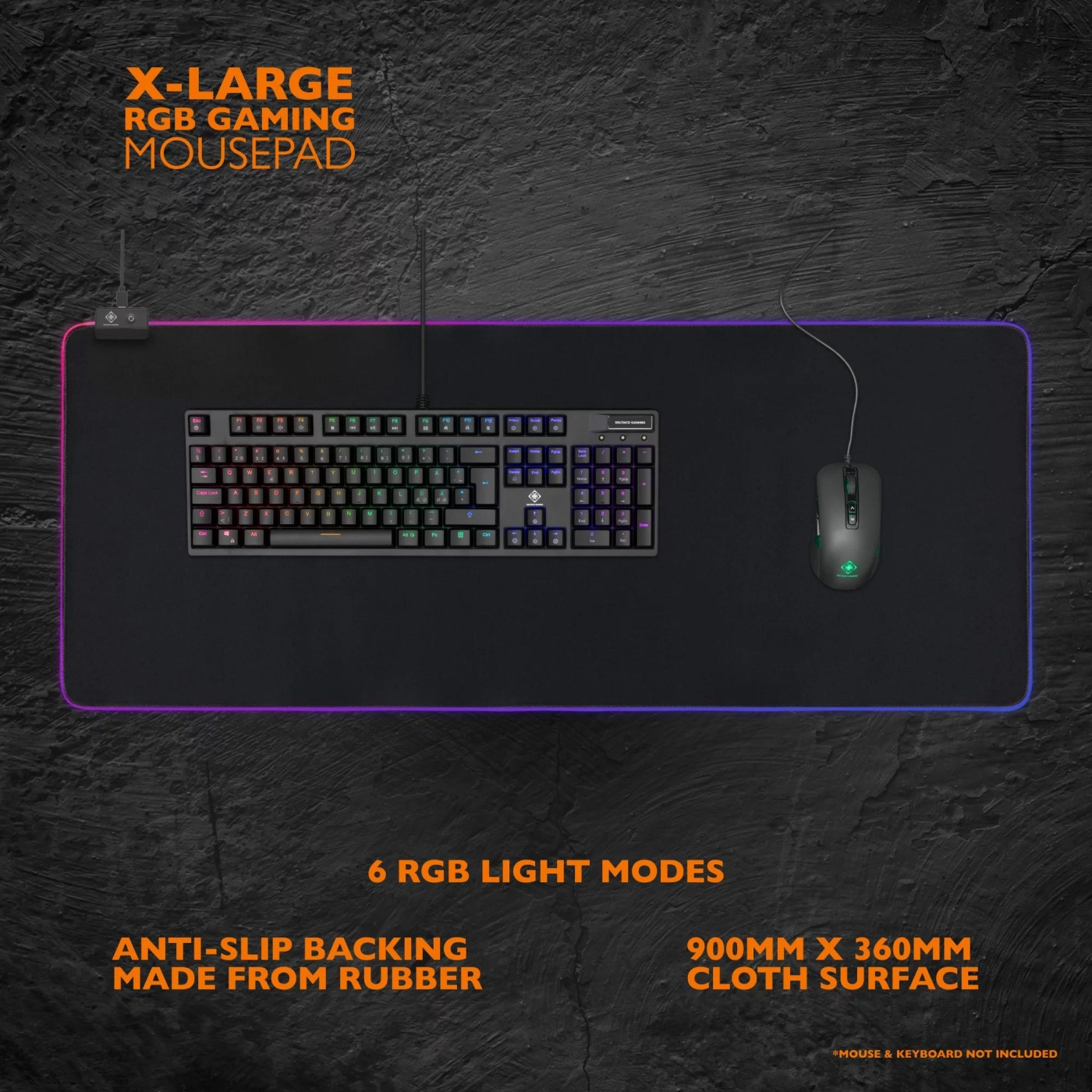 DELTACO GAMING RGB-musematte, 90x36cm, 6x RGB moduser, 7x statiske moduser, svart