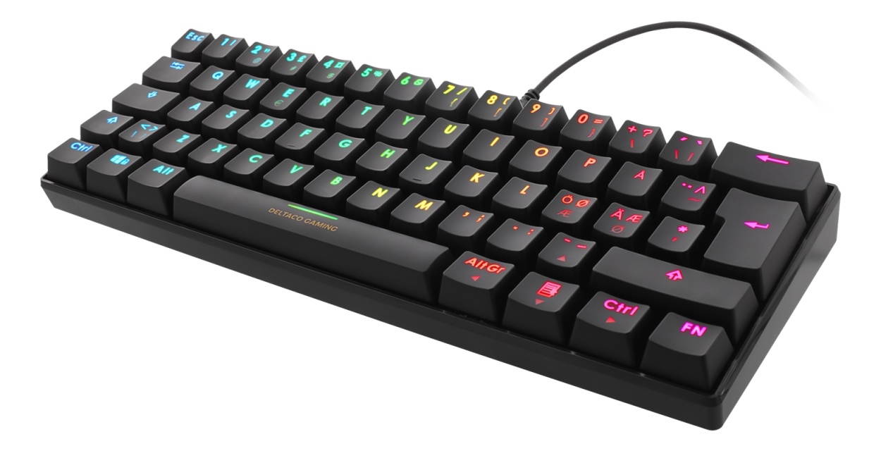 DELTACO GAMING mekanisk minitastatur, 60% PAN-Nordic Layout, RGB, brune brytere, svart