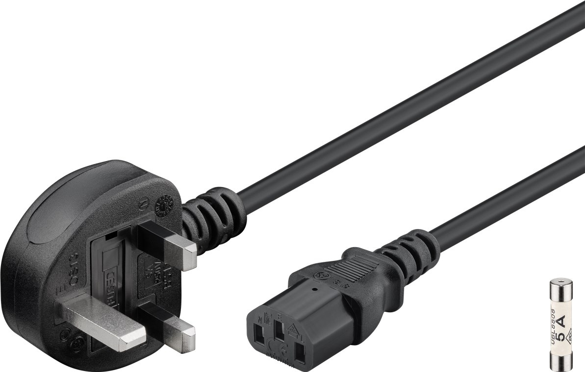 - universalkabel med IEC-plugg og britisk 3-pinners plugg (type G, BS 1363)