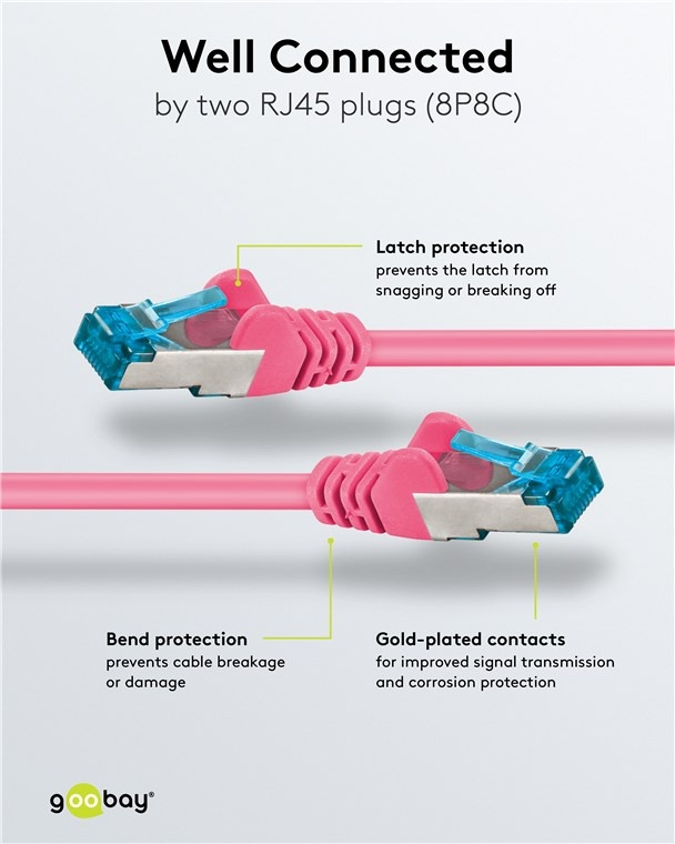 - Bøyebeskyttelse og stabil kappe beskytter Ethernet-kabelen optimalt mot kabelbrudd.