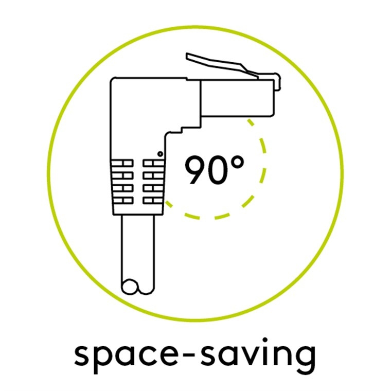 - 1x 90° vinklet RJ45-plugg er en ideell løsning på trange steder.