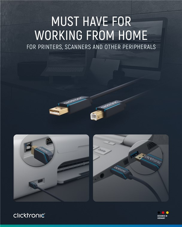 - Clicktronic USB-adapterkabelen har en USB-A- og USB-B-kontakt av høy kvalitet.