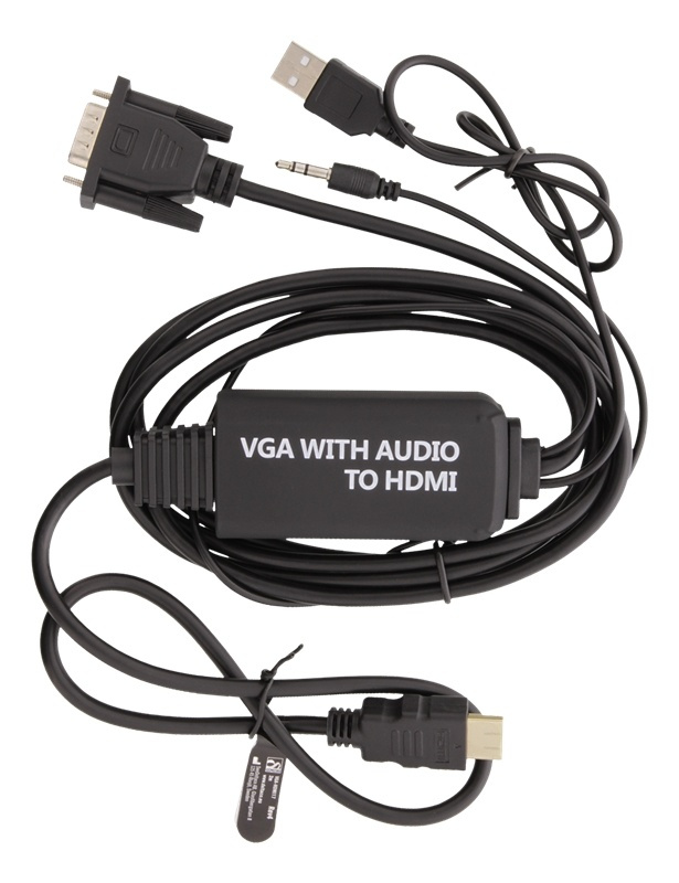 DELTACO VGA med lyd til HDMI-kabel, VGA/HDMI/USB/3,5 mm, 1920x1080 i 60 Hz, 2 m, svart
