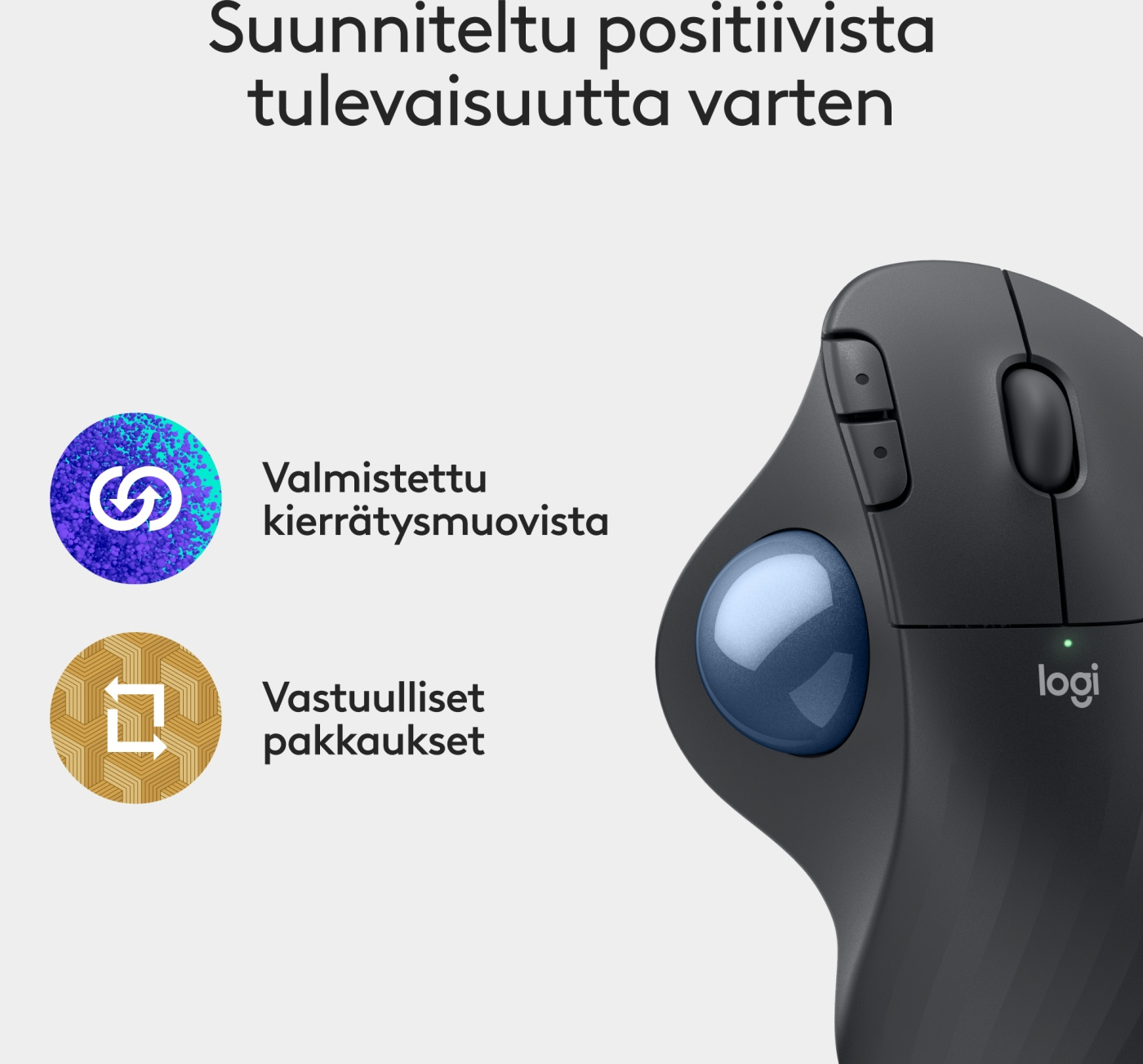 Laget av resirkulert plast: Plastdelene på ERGO M575S Bluetooth-kulemusen er laget av sertifisert plast resirkulert fra forbrukere (grafitt: 52 %, naturhvit: 21 %) (4).
