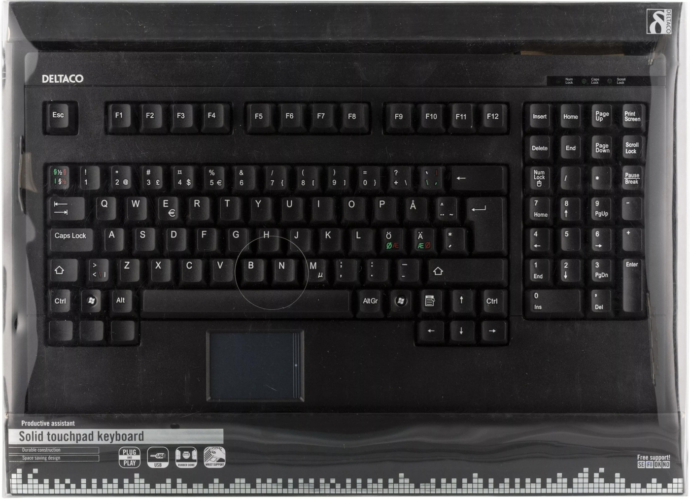 DELTACO Tastatur med touchpad, nordisk layout, USB, svart