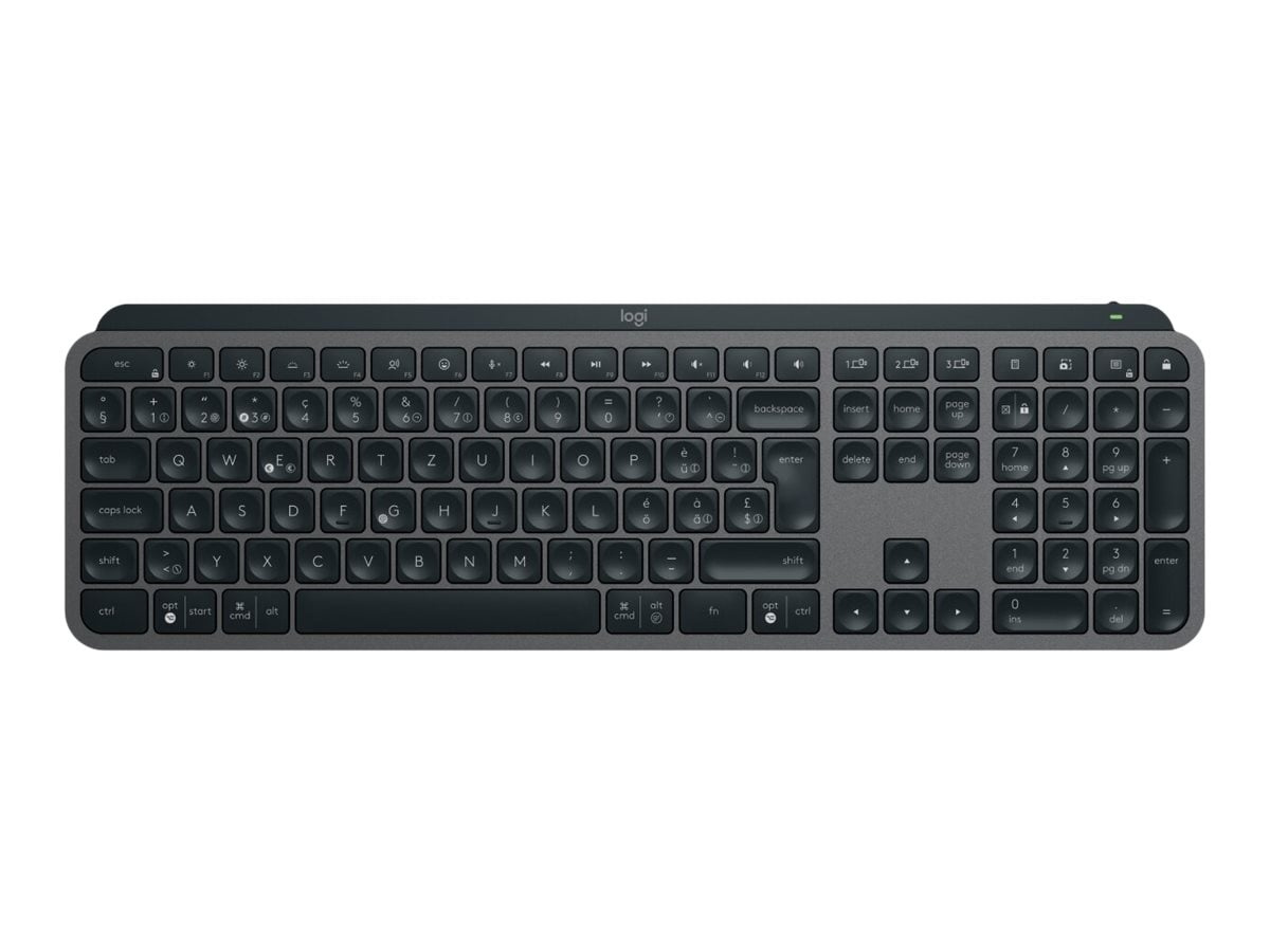 - Resirkulerte materialer: MX Keys S Wireless Keyboard er miljøbevisst, med 26 % resirkulert plast fra forbrukere i Graphite og 11 % i Pale Grey (5).