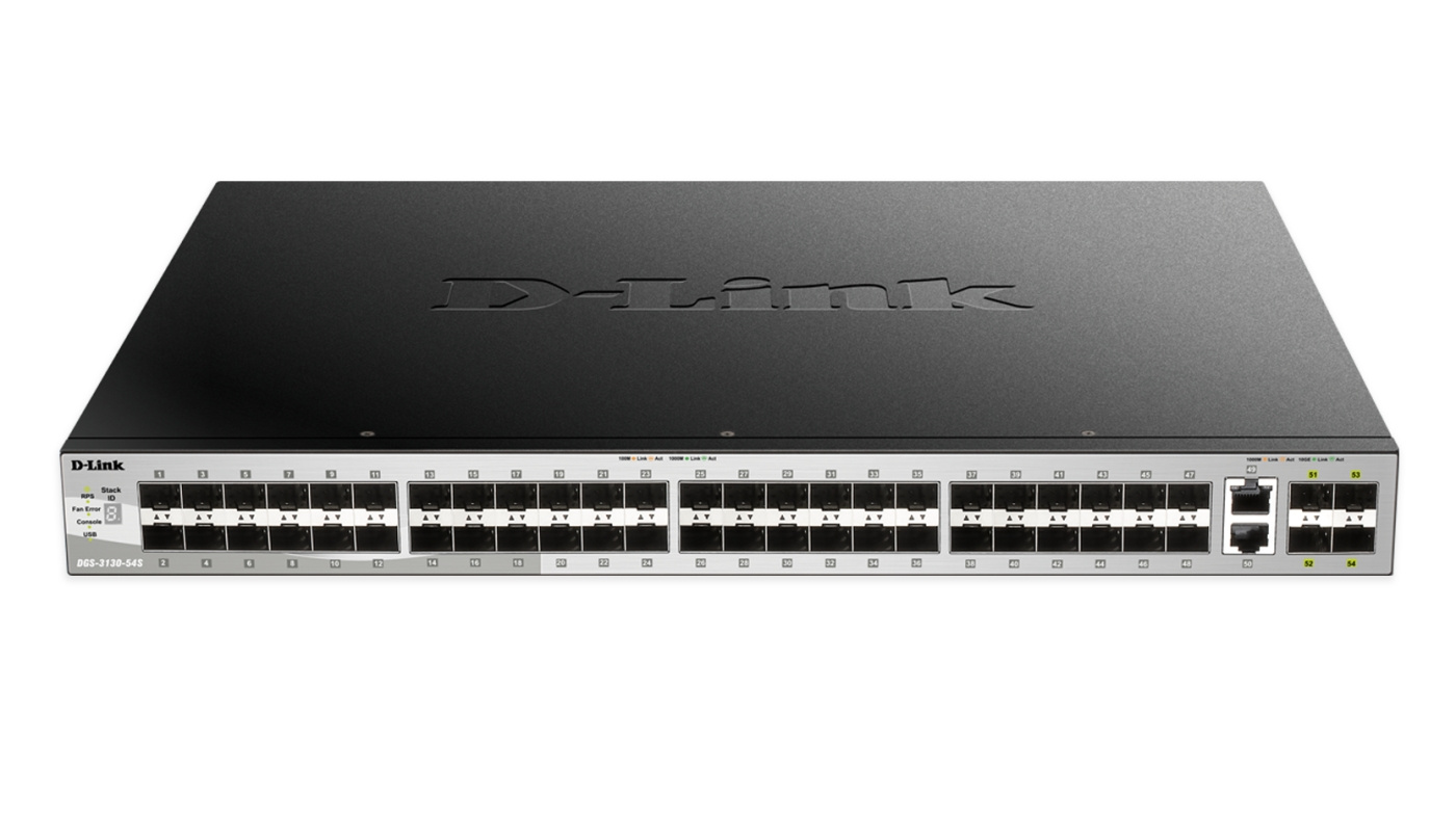 DGS-3130-54TS har 48 10/100/1000 Mbps Gigabit Ethernet-porter. Den er også utstyrt med en USB 2.0-port som gjør det mulig for brukeren å starte opp bilder og laste opp konfigurasjonsfiler direkte, samt lagre syslog-filer på en USB 2.0-lagringsenhet.