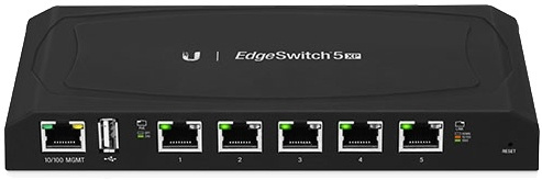 Ubiquiti EdgeSwitch XP Gigabit-svitsj, 5-porter, 24 V PoE, carrier-class, svart