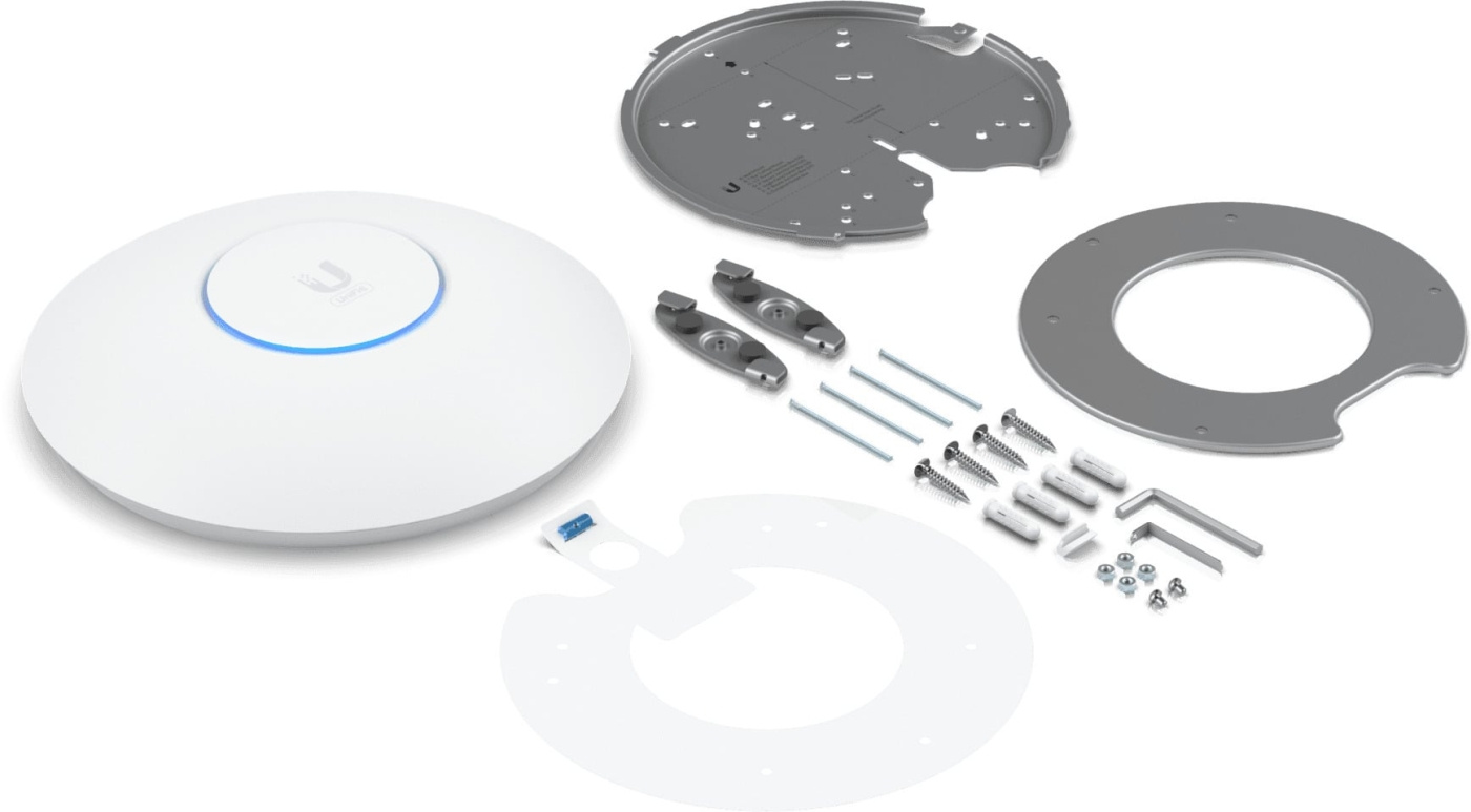 - Innhold i pakken: UniFi 6 Enterprise-basestasjon, vegg-/takfeste, hurtigveiledning