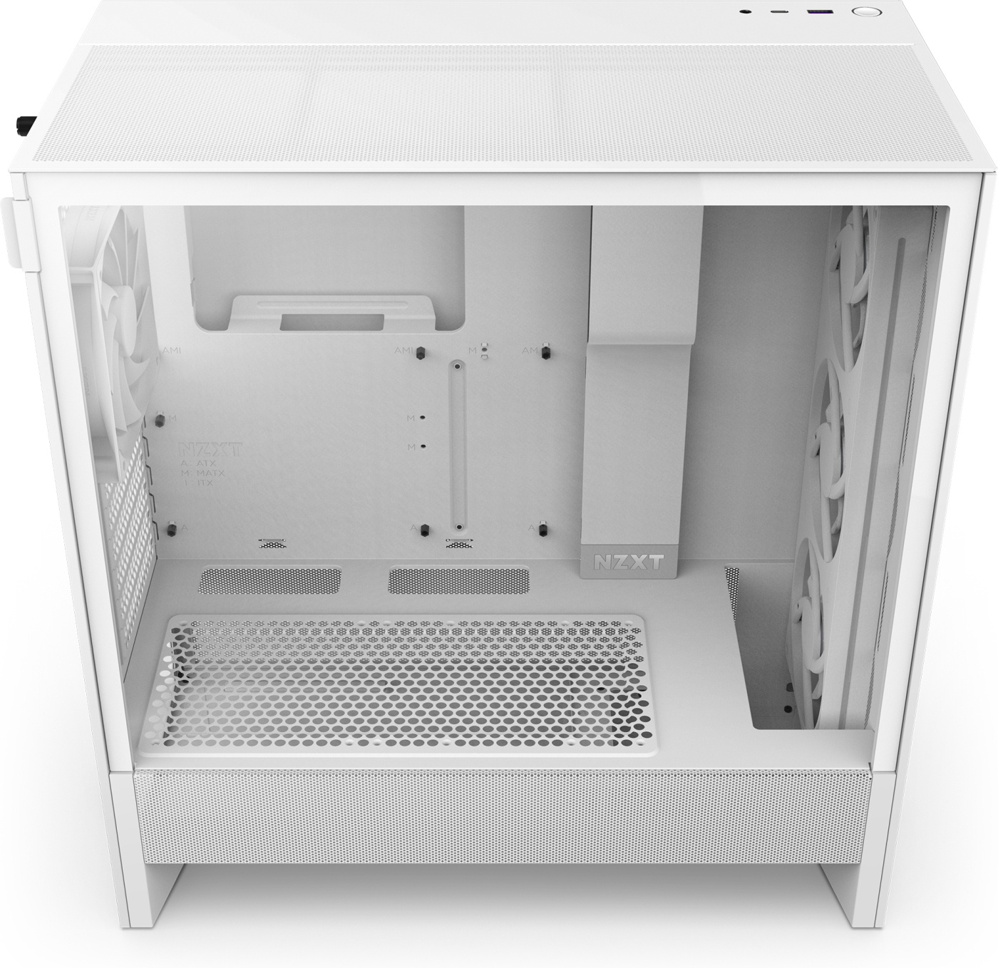 Strømforsyningsdekselet er perforert på sidene og bunnen, noe som muliggjør optimal luftinntak fra to 120 mm-vifter (ikke inkludert). Det støtter opptil 360 mm kjøleribbe foran og 240 mm kjøleribbe på toppen, noe som gir effektive alternativer for væskekjøling. Et svært fint nett på topp-, front- og sidepanelene maksimerer luftstrømmen og filtrerer støv effektivt.