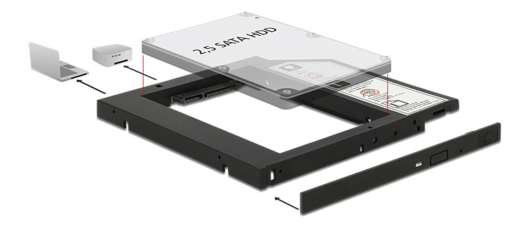 DeLOCK monteringsramme for å montere 2,5" SATA harddisk i en 5,25", 9,5mm, svart