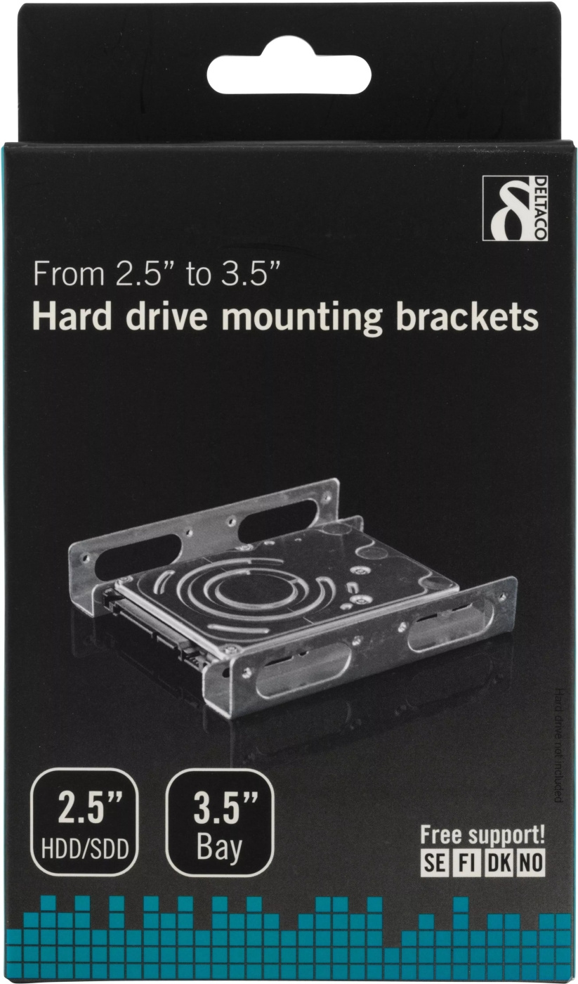 DELTACO monteringsvinkler for å kunne montere en 2,5» harddisk i en 3,5» plass.