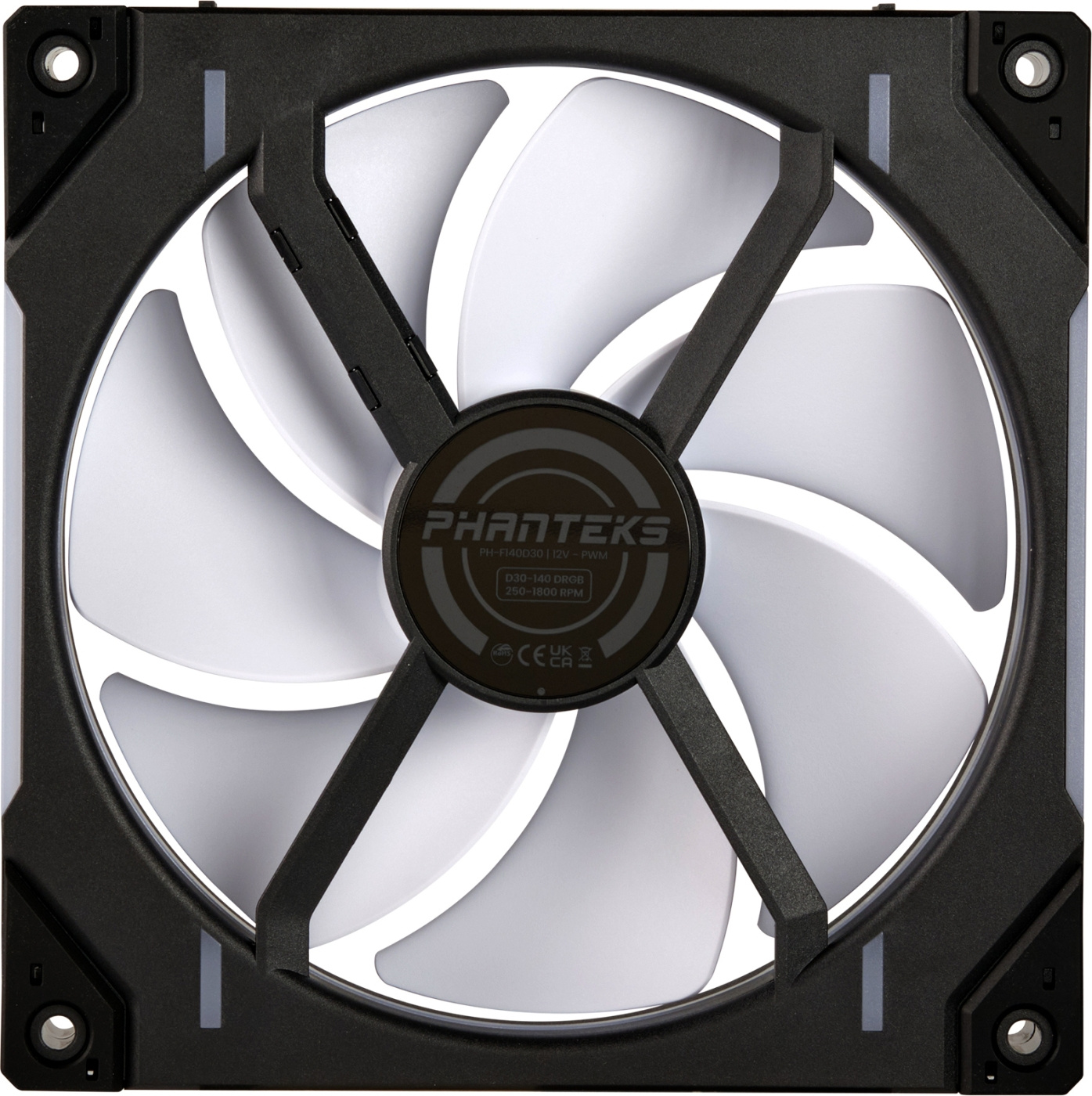 Phanteks D30-140 er utstyrt med integrert D-RGB-belysning på hele rammen og vingene på alle sider. Flere D30-140-vifter kan kobles sammen med brokoblinger og skruedekkeplater for å redusere antall kabler, noe som bidrar til å holde kabinettet ryddig.