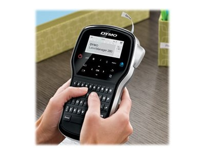 DYMO LabelManager T 280 QWERTY. Tastaturoppsett: QWERTZ. Båndtype: D1. Utskriftsteknologi: Termisk overføring, Maksimal oppløsning: 180 x 180 DPI, Utskriftshastighet: 15 mm/sek. Papirbredde som støttes: 6, 9, 12 mm. Produktfarge: Svart, Sølv