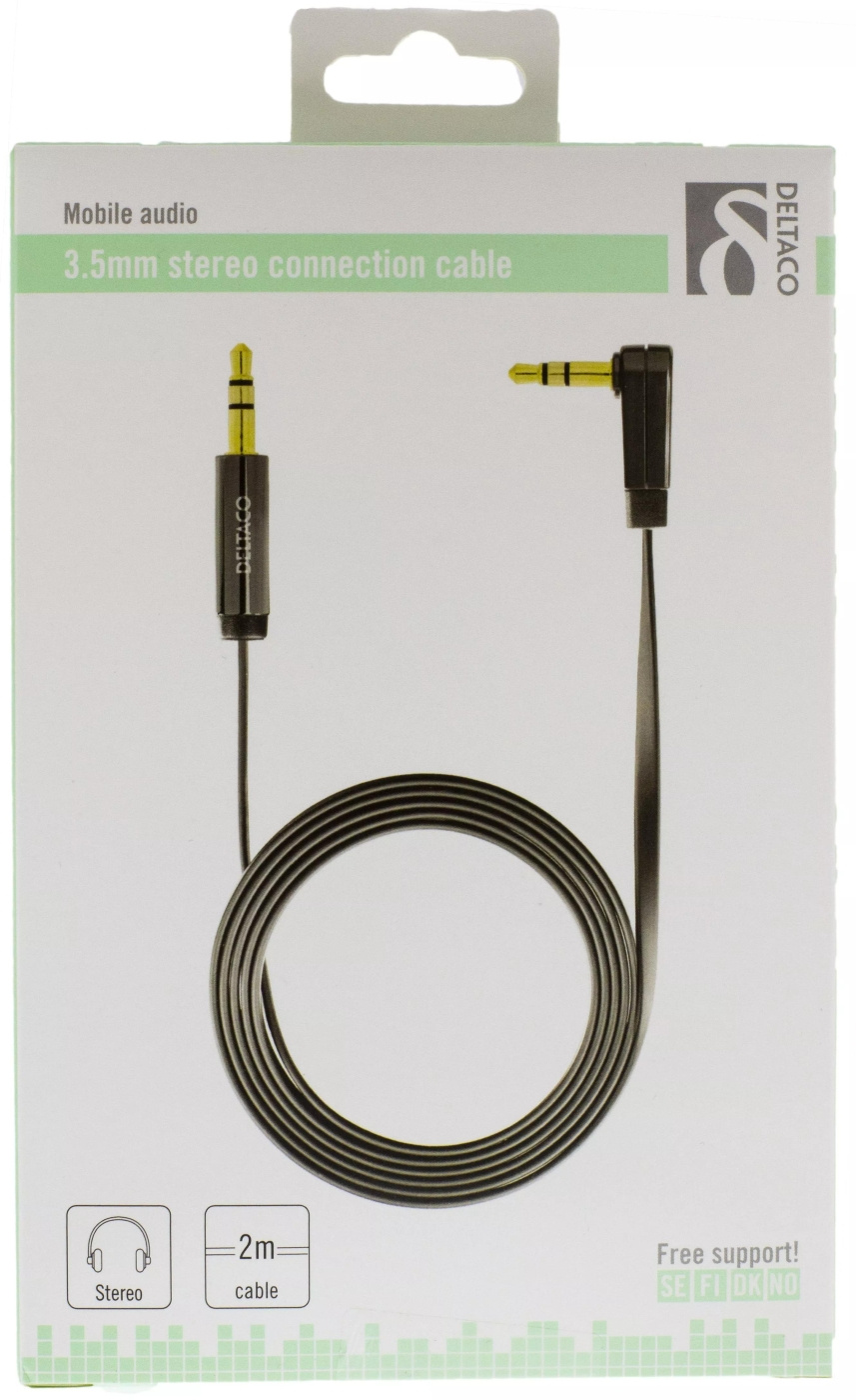 DELTACO ljudkabel, vinklad 3,5mm hane - 3,5mm hane, 2m, svart