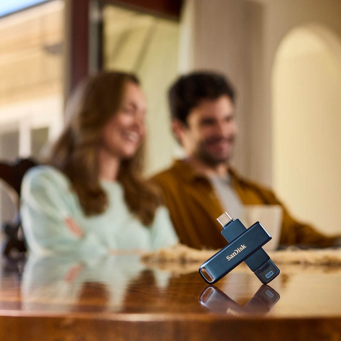 Opplev et nytt nivå av bekvemmelighet med iXpand Phone Drive, som er designet for enkel tilkobling av iPhone-, iPad- og Mac-enheter. Med to kontakter kan du enkelt flytte filer mellom Apple-enheter og USB Type-C™-enheter, noe som sikrer kompatibilitet og fleksibilitet.