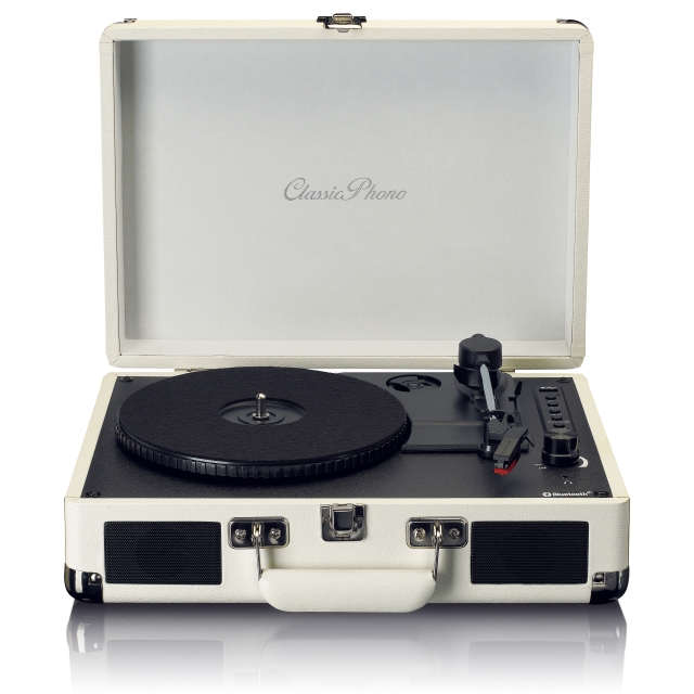 Denne Bluetooth®-platespilleren er tilgjengelig i svart og kremfarget.