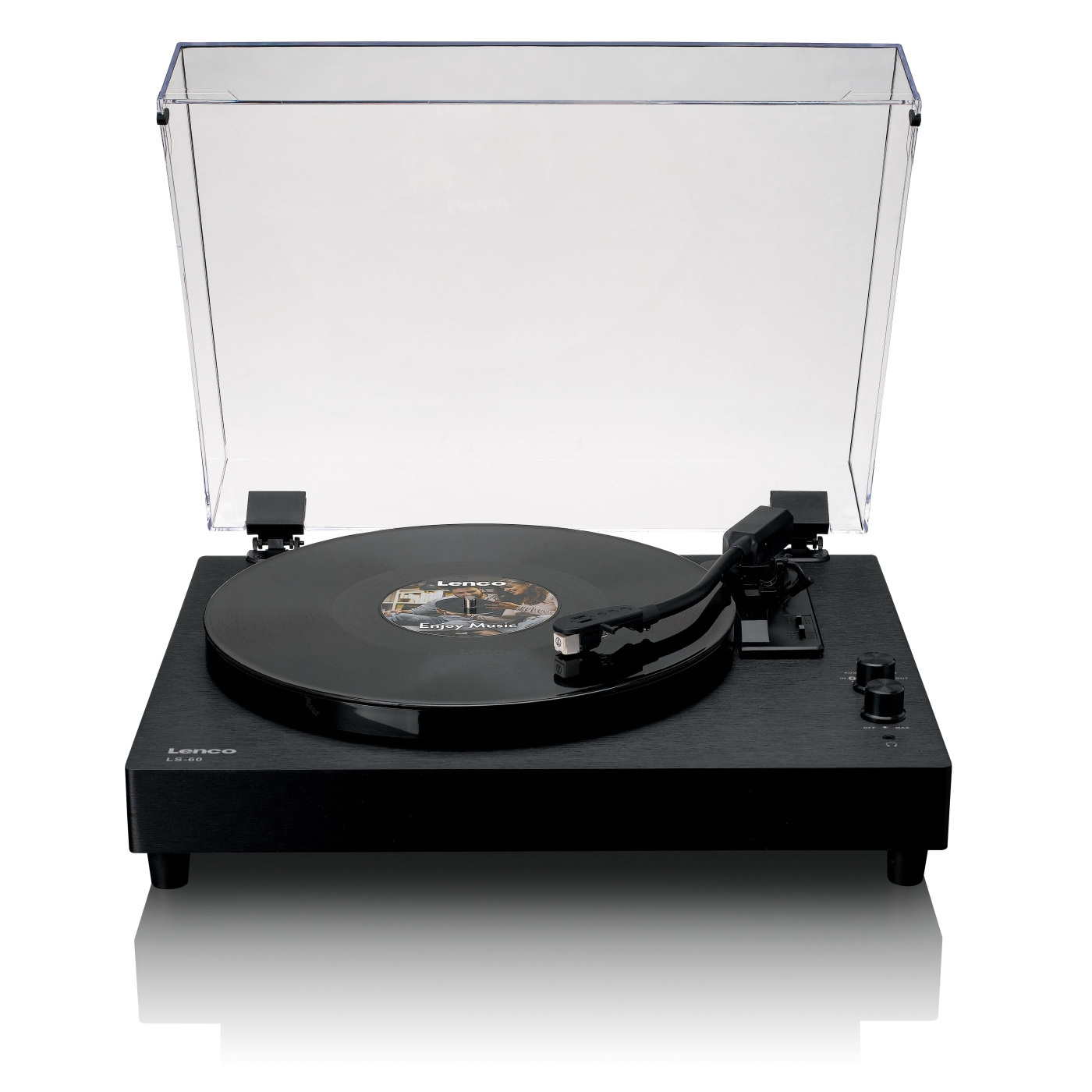 Enten du er nybegynner eller en erfaren vinylsamler, er LS-60BK intuitiv å bruke. Du kan enkelt koble den til ditt eget lydsystem via RCA-utgangen hvis du ønsker det. Det medfølgende avtakbare støvdekselet beskytter platespilleren mot støv og smuss.