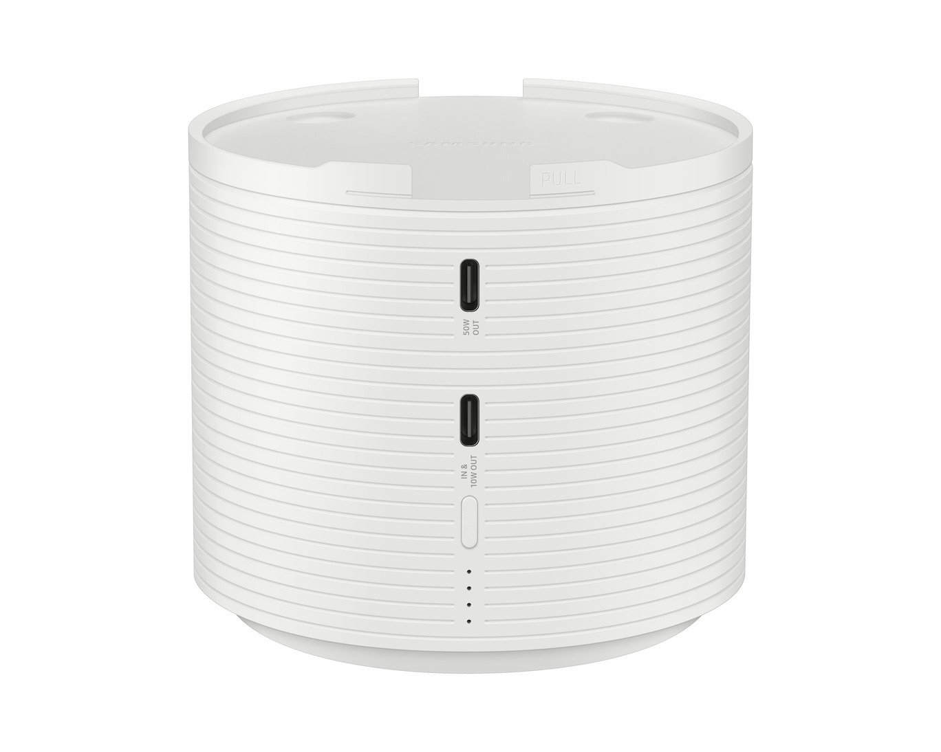 Samsung The Freestyle Battery Base gir projektoren din driftstid uten strøm fra strømnettet. Battery Base støtter i tillegg lading av mobiltelefoner. Det følger med en USB-kabel som brukes til å koble projektoren til batteribasen. Den store kapasiteten på 32 000 mAh gir omtrent tre timer ekstra driftstid for projektoren.