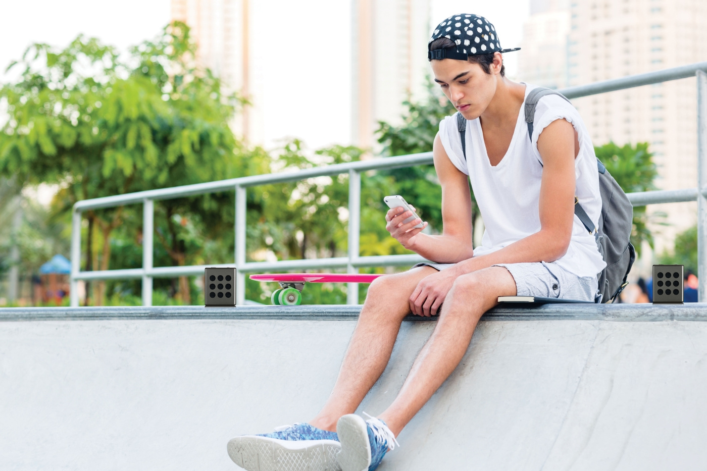 Når vennene dine kommer på besøk for å grille i hagen, tar du også med deg Lenco BTP-200 ut. Begge høyttalerne fungerer perfekt i hele 8 timer på én enkelt batterilading. Du trenger altså ikke å lete etter en skjøteledning for å få strøm i hagen. Den innebygde Bluetooth®-teknologien gjør at hvem som helst kan lytte til favorittsangen sin på en smarttelefon eller et nettbrett. Du kan selvsagt også spille av musikk ved å koble den til AUX-inngangen på 3,5 mm. Dermed trenger du aldri å gå uten musikk.