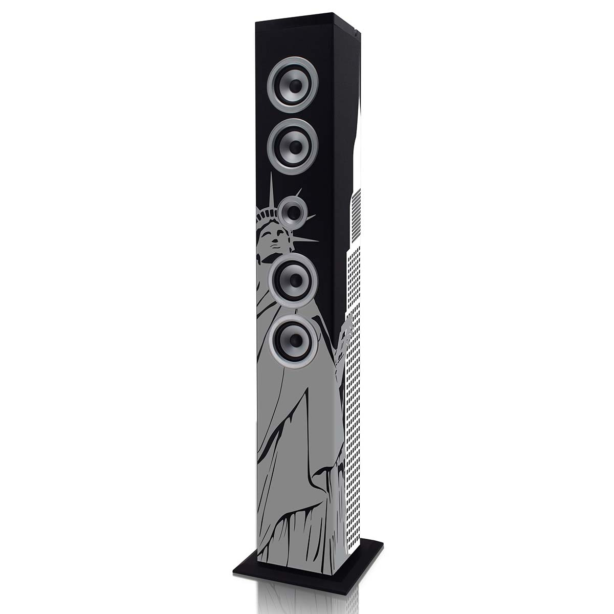 I tillegg til USB- og SD-inngang er det også en AUX-inngang. Denne IBT-6-høyttaleren fra Ices har det tyske flagget. For entusiasten er denne høyttaleren et must-have. Denne høyttaleren er tilgjengelig med seks forskjellige trykk: Deutschland, Zebra, Sea, New York Liberty, Roma og Tags.