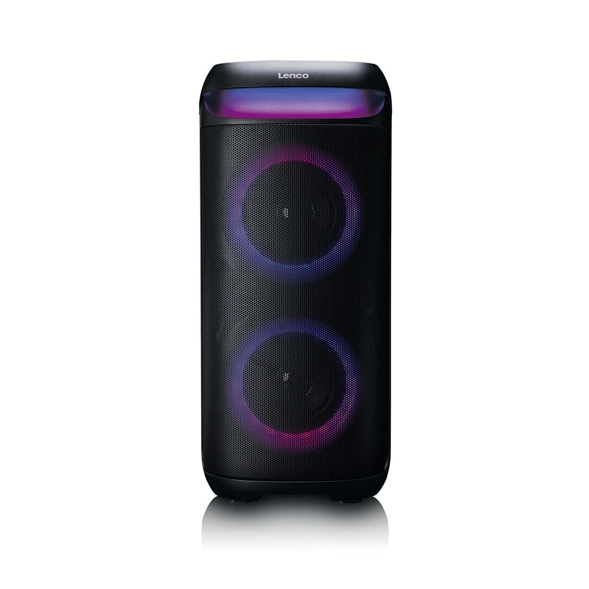Den robuste høyttalergrillen i stål øker holdbarheten, mens den justerbare LED-belysningen synkroniseres med musikken og kan slås av når du foretrekker det. For utvidede lydoppsett gir TWS-paring ekte trådløs stereo når du bruker to PA-210-enheter sammen.