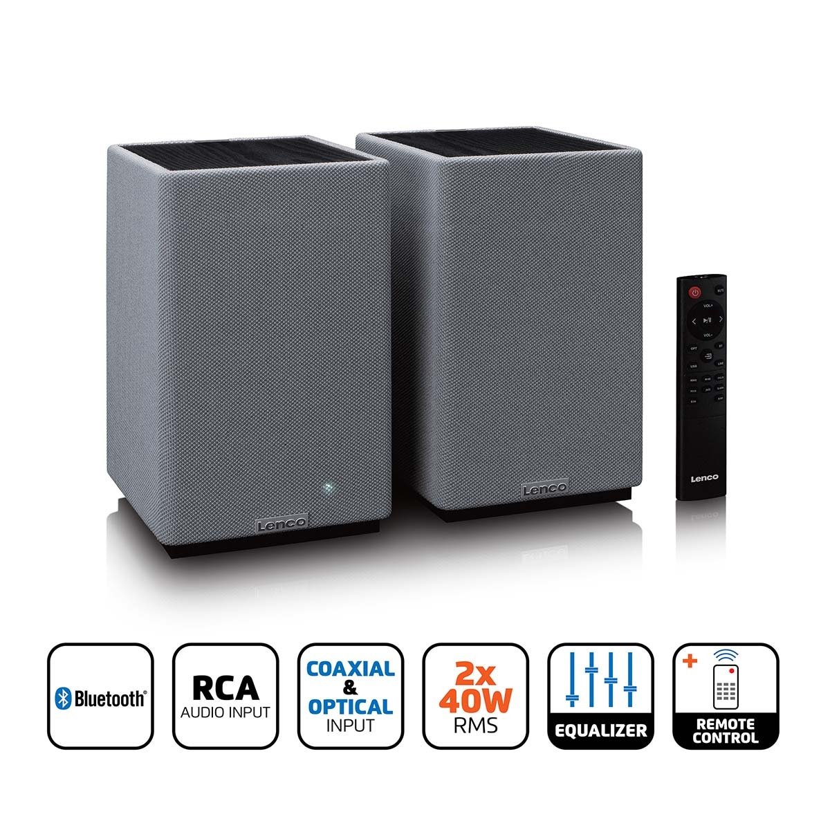 Lenco Stereo Bookshelf-høyttalerne leveres klare til bruk med fjernkontroll, RCA-kabel og vekselstrømadapter inkludert, slik at installasjonen går raskt og problemfritt. Den rene, moderne designen utfyller ethvert interiør, noe som gjør dem til et stilig og funksjonelt tillegg til ethvert rom.