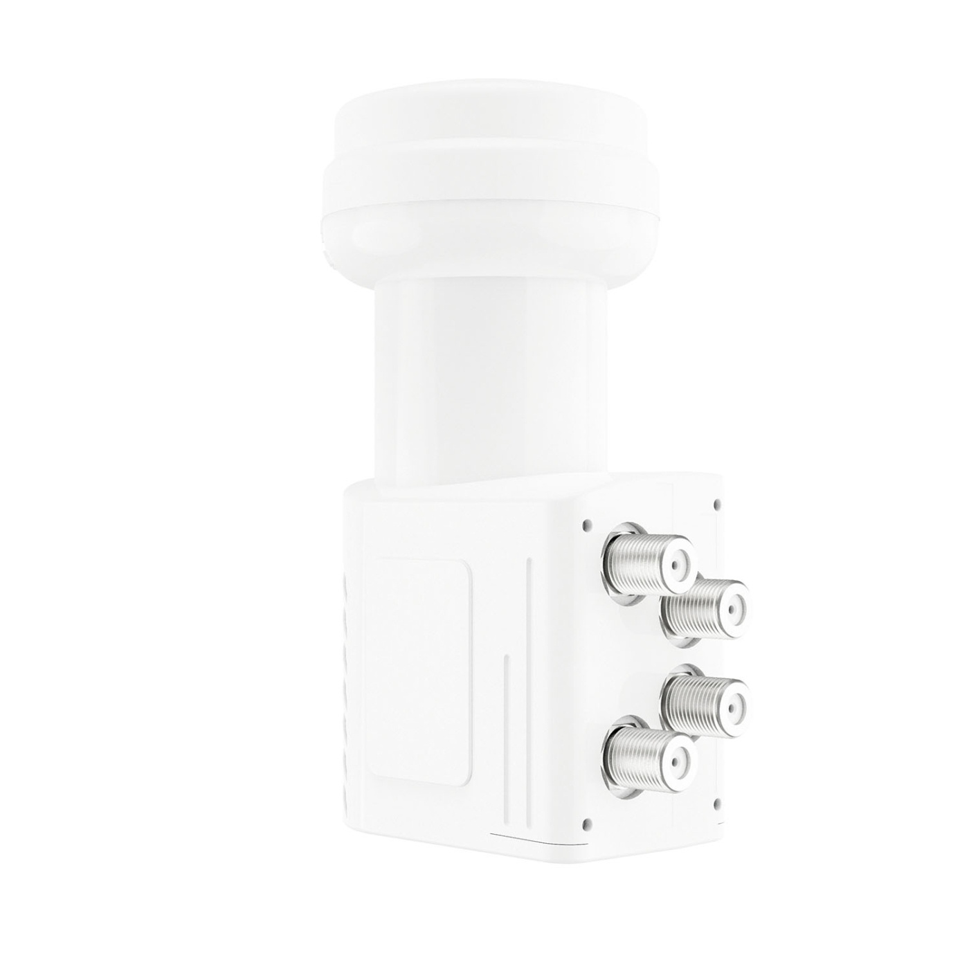 Universal LNB Quattro er utviklet for å gi utmerket ytelse med en lav støyfaktor på bare 0,3 dB, noe som sikrer et klart signalmottak. Det robuste, værbestandige kabinettet gir beskyttelse mot vær og vind og opprettholder en jevn overføringskvalitet. Med fire tilkoblinger gjør denne LNB-en det mulig å koble til flere digitale mottakere når den brukes med en ekstern multiswitch. Komponentene av høy kvalitet som er brukt i konstruksjonen, bidrar til spesielt lave støynivåer, noe som gjør den til et pålitelig valg for å forbedre satellittmottaksoppsettet ditt.