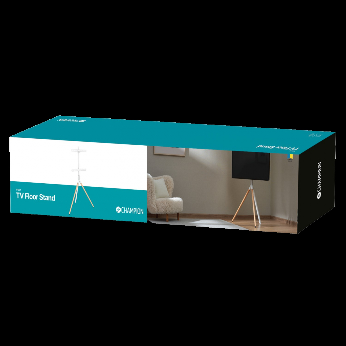 Champion TV-gulvstativet passer like godt hjemme som på kontoret. Et moderne skandinavisk design med lette treben som tåler TV-størrelser opp til 65" og en vekt på 32 kg. Stativet monteres enkelt på et par minutter, og du har mulighet til å rotere TV-en. Kablene er pent skjult langs det bakre benet.