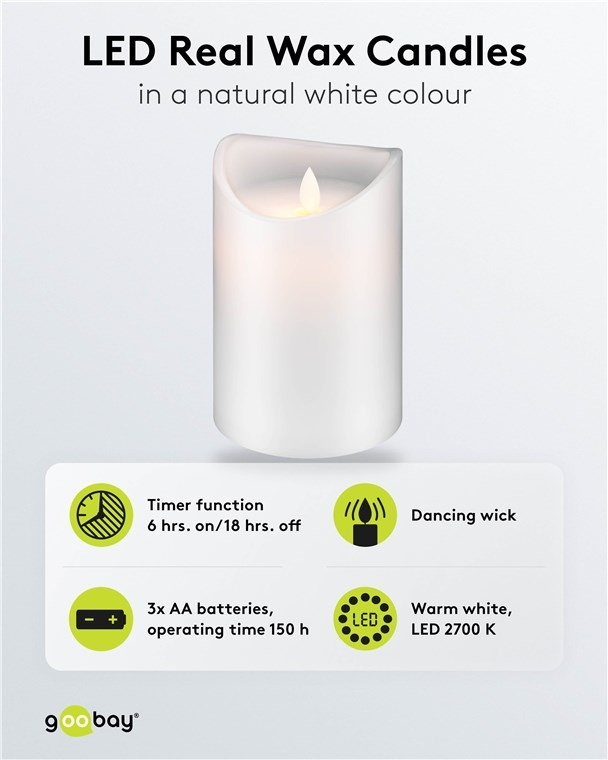 - Unik flammeeffekt takket være pendelveke og ekte vokshylster - nesten umulig å skille fra et ekte stearinlys