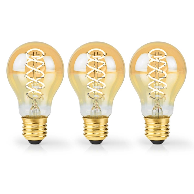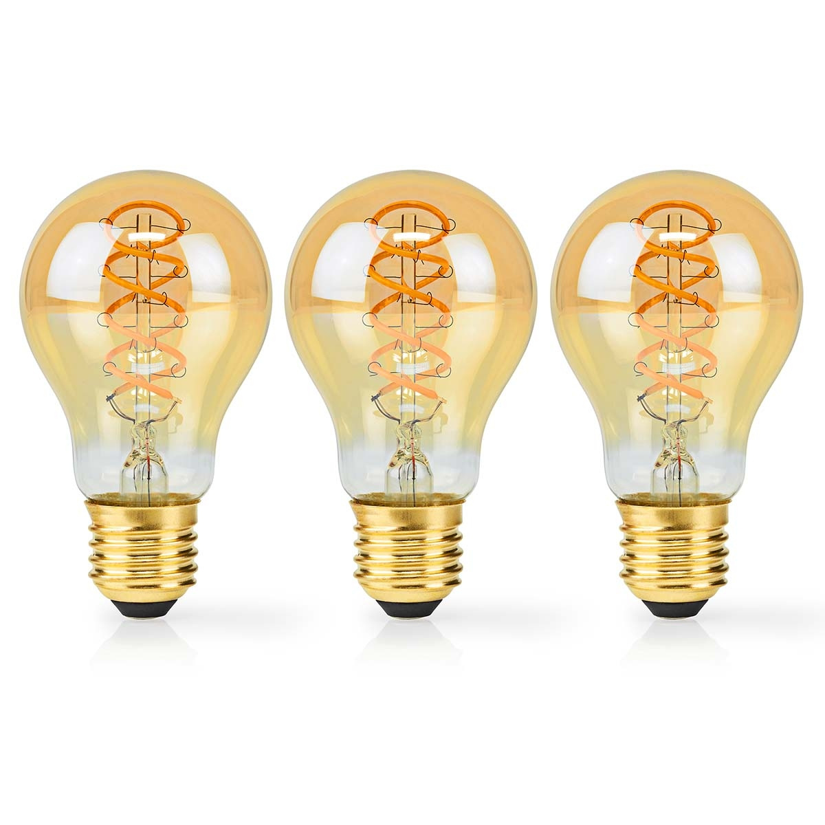 Nedis LED lyspære E27 | A60 | 3.8 W | 250 lm | 2100 K | Dimbar | Extra Warm White | Retro Style | 3 stk.