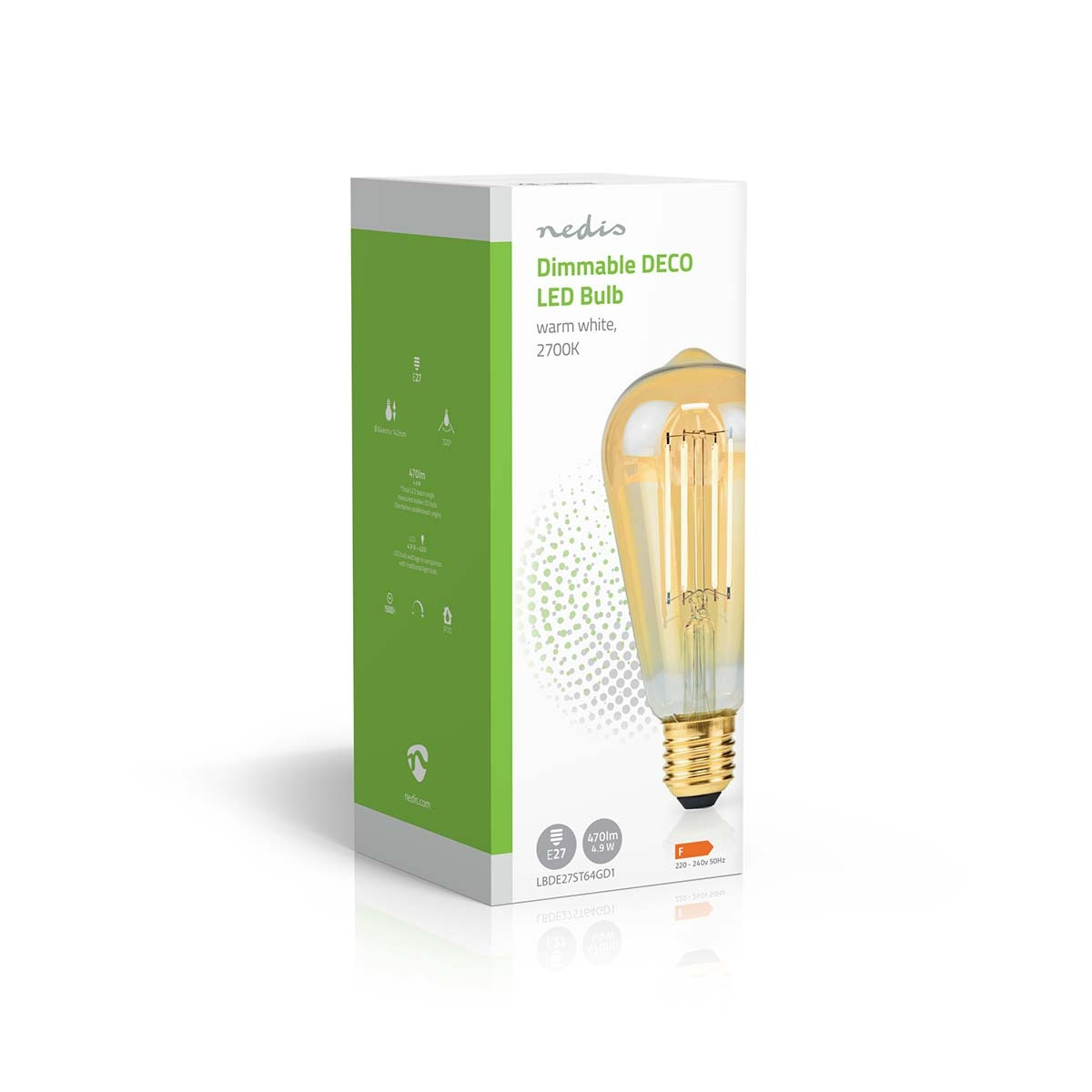 Nedis LED lyspære E27 | ST64 | 4.9 W | 470 lm | 2100 K | Dimbar | Ekstra varm hvit | Retro Style | 1 stk