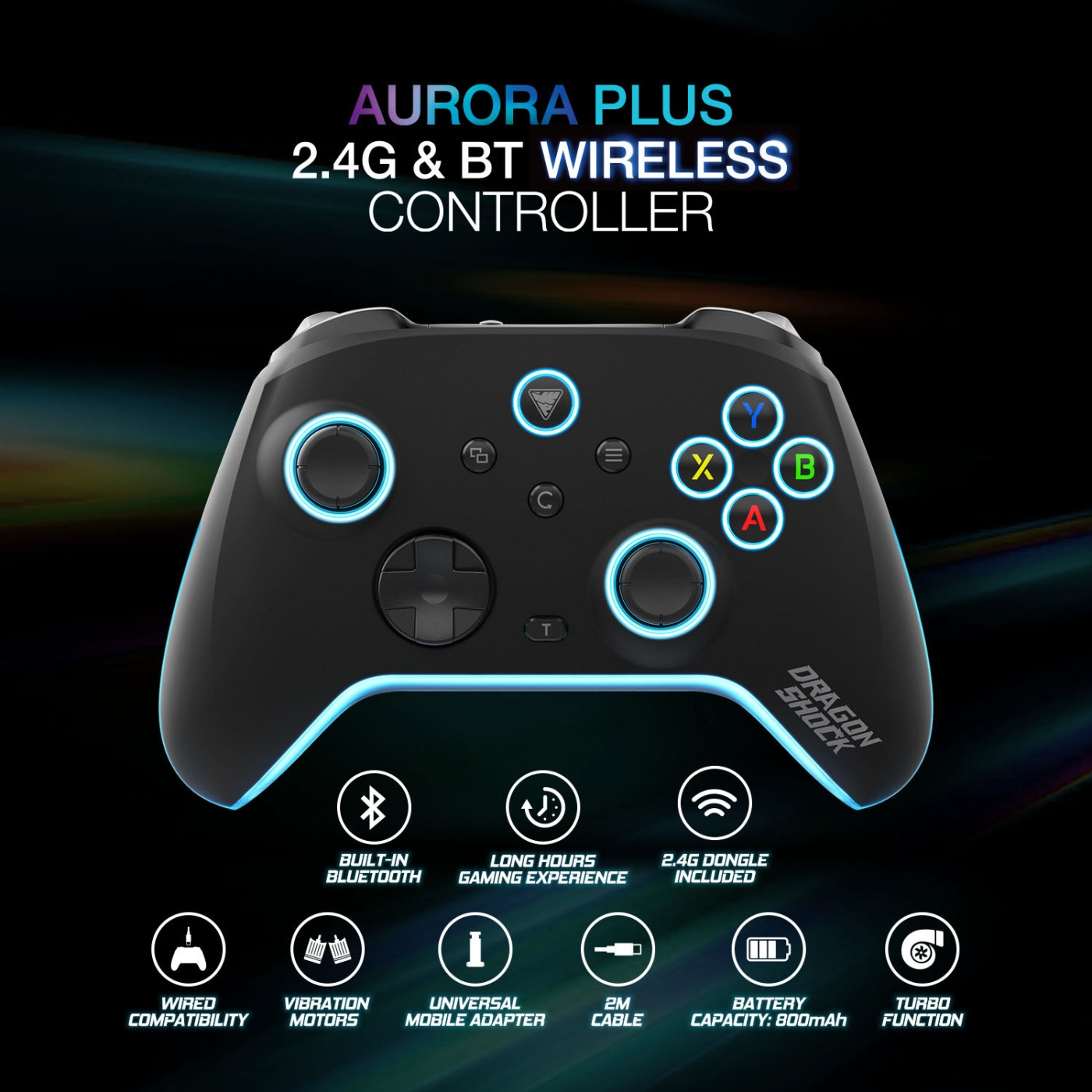Denne kontrolleren er kompatibel med PC-, mobil- og skybaserte spillplattformer, og sørger for en konsekvent spillopplevelse av høy kvalitet uansett hvor du er. Med et 800mAh-batteri og en 2m lang Type-C-ladekabel kan du nyte lengre spilløkter uten avbrudd. Aurora+-kontrolleren fra Dragonshock er laget for å frigjøre spillpotensialet ditt med sine allsidige og tilpassbare funksjoner.