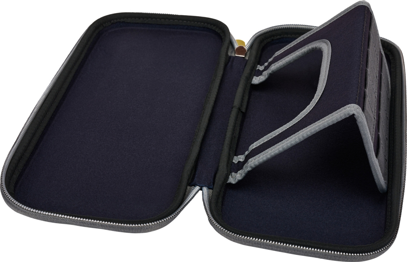 Innvendig har det filtfôr, et innebygd spillstativ, en liten nettinglomme og plass til ti spillkort. Reiseetuiet er solid laget og beskytter spillkonsollen effektivt mot støt, smuss og riper.