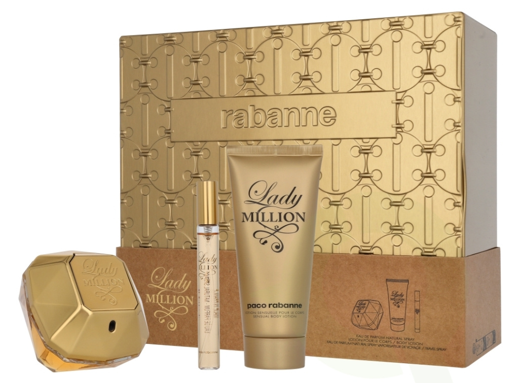 Paco Rabanne Lady Million Giftset 190 ml Edp Spray 80ml/Body Lotion 100ml/Edp Spray 10ml