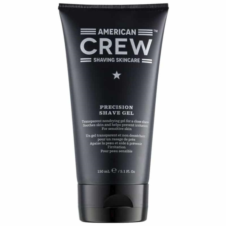 American Crew Precision Shave Gel 150 ml - en transparent barbergel som gir en god glideflate og en ren barbering. Gir mulighet for presisjonsbarbering og konturbarbering. Basert på naturlige ingredienser. Den inneholder gresskarfrøekstrakt og tea tree-olje som mykgjør huden og forebygger irritasjon.for normal til myk skjeggvekst.bruk:Brukes til våtbarbering etter rensing. La skjegget være litt fuktig når du påfører barberkremen. Barber langs hårene med en skarp barberhøvel. Skyll av med lunkent vann og klapp huden tørr. Avslutt med en after shave og/eller en fuktighetskrem.150mlIngredienser:Aqua, Sodium Laureth Sulfate, Glycerin, Acrylates/C10-30 Alkyl Acrylate Crosspolymer, Triethanolamine, Cocamidopropyl Betaine, Sea Water, Cucurbita Pepo (Pumpkin) Seed Extract, Aloe Barbadensis Leaf Juice, Mentha Pip-erita (Peppermint) Oil, Melaleuca Alternifolia (Tea Tree) Leaf Oil, Camellia Sinensis Leaf Extract, Salvia Hispanica Seed Extract, Urtica Dioica (brennesle) ekstrakt, Symphytum Officinale bladekstrakt, Chondrus Crispus (karragenan) ekstrakt, Sambucus Nigra blomsterekstrakt, Echinacea Angustifolia ekstrakt, Vitis Vinifera (druefrøolje), tokoferolacetat, benzofenon-4, polyquaternium-11, fenoksyetanol, butylparaben, etylparaben, isobutylparaben, metylparaben, propylparaben, propylparaben