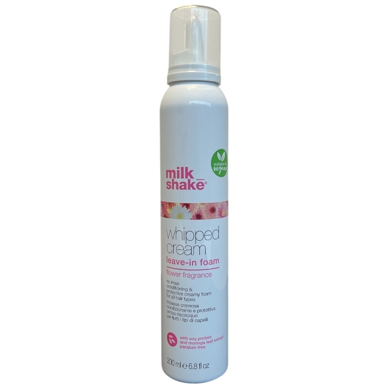 Milk_Shake Conditioning Whipped Cream Flower Fragrance är ett återfuktande skum för håret som inte tvättas ur. Idealisk att använda för torra, ostyriga hår som behöver extra mycket fukt. Håret blir mjukt, glansigt och hälsosamt. Innehåller Integrity 41* och hyaluronsyra med anti-age-egenskaper samt skyddar hårfärgen.200ml