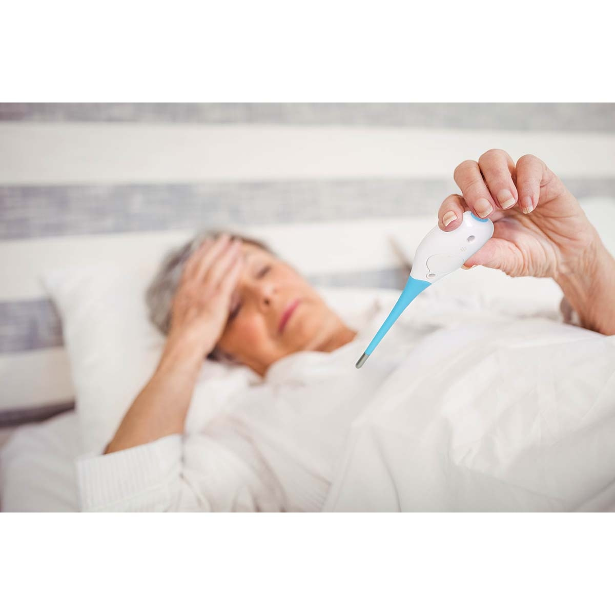 Fysic FT09-termometeret med stort, opplyst display hjelper deg når du har følt deg bedre. Når du er syk, kan det å måle temperaturen gjøre dagen enda mer irriterende. Men med FT09-termometeret er dette en saga blott. Takket være det ekstra store, opplyste displayet kan du enkelt lese av temperaturen selv i mørket, og du kan raskt legge deg i sengen igjen.