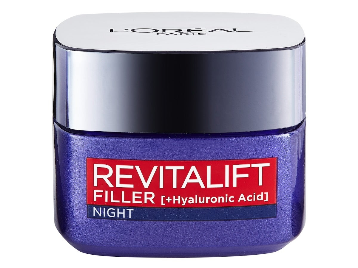 Revitalift Filler [HA] Night cream fra L'Oréal er en dagkrem for den modne huden, som passer for deg som er 40 år + og ønsker å redusere rynker og forbedre hudens volum. Den går inn og jobber med hudens naturlige produksjon av hyaluronsyre som avtar med alderen. Det bidrar til å få rynkene redusert og fastheten tilbake. Derfor har L'Oreal utviklet denne kremen med høy konsentrasjon av hyaluronsyre.